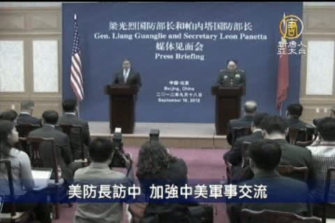 【新唐人亞太台2012年9月19日訊】美國國防部長潘內達18號與中共國防部長梁光烈,在北京舉行會談,雙方就釣魚台問題進行磋商;潘內達並邀中共參加2014年的環太平洋軍演。潘內達對釣魚台所引發的中日爭端表示,美國持續關注東亞的海上安全,呼籲各方冷靜並透過外交溝通開啟對話,和平解決主權爭議。