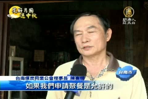 【新唐人亞太台2012年9月25日訊】再過幾天就是中秋節,近日已可看到民眾在烤肉。煤炭業者指出,台南市推行低碳城市,不補助民間社團秋節烤肉活動,社區公園也禁止烤肉,少了大宗客戶,木炭銷量銳減,業者生意大受影響。