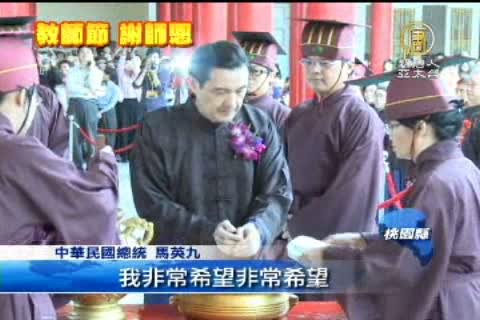 【新唐人亞太台2012年9月28日訊】今天(28日)教師節,也是至聖先師孔子2562年誕辰紀念日,桃園縣府在孔廟舉辦祭孔大典,縣長吳志揚擔任正獻官祭祀,馬英九總統今年也特別蒞臨桃園參與上香祭拜儀式。