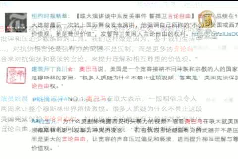 【新唐人亞太台2012年9月28日訊】美國總統歐巴馬,日前在聯合國大會,發表他選前最後一次外交演說。歐巴馬說,他每天接受各種各樣對他的批評辱罵,但是仍將捍衛批評者發言的權利,因為美國是一個保護言論自由的國家。不少中國網友,對歐巴馬的這番話深受感動。