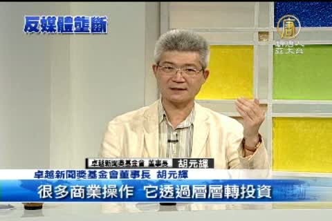 【新唐人亞太台2012年9月29日訊】旺中併購中嘉案有條件通過後,外界聚焦反媒體壟斷。多位傳播名人,包括前中時副總編馮光遠、前公視總經理胡元輝、台大新研所教授張錦華,在即將播出的新唐人新聞新視野節目中表示,台灣媒體遭紅色資本威脅滲透,反媒體壟斷立法,勢在必行,並且應該納入公民參與機制。