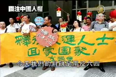 【新唐人亞太台2012年9月29日訊】香港支聯會趁中秋節前夕,28號來到港府總部送月餅慰問大陸被囚禁的維權異見人士,強調只有結束中共暴政,才有真正團聚的權利。