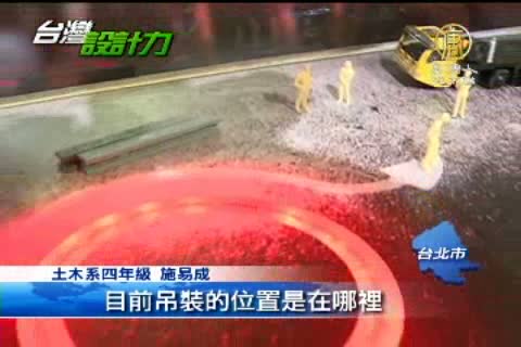 土木系四年級 施易成:「主要是要可以在,他還沒進入之前,就可以看到說目前吊裝的位置是在哪裡,就跟以往的三角錐的,一個使用情形比較不一樣,因為三角錐它是靜態的,我們這個投影的話,它可以隨著我們吊裝的作業,移動而改變。」