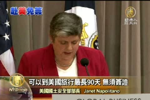 美國國土安全部部長 Janet Napolitano:「從11月1日開始﹐合格的台灣護照持有者﹐可以到美國旅行最長90天﹐無須簽證。」