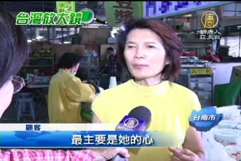 【新唐人亞太台2012年10月5日訊】油電、瓦斯都上漲,帶動民生物價也跟著漲,不過在臺南的果菜市場裡,有一家賣豆漿的攤販,為了保持豆漿的品質,還是堅持把豆漿熬煮四小時,而且也不漲價,帶您一起來了解。