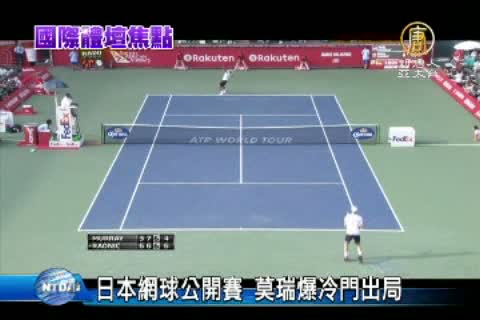 【新唐人亞太台2012年10月7日訊】英國「希望」莫瑞,週六(6號)在日本網球公開賽男單準決賽爆出冷門,他在半決賽中遭遇加拿大小將羅尼奇,苦戰2小時46分鐘後以3比6、7比6、6比7敗給加拿大網將羅尼奇,衛冕夢碎 。