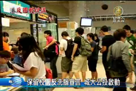 【新唐人亞太台2012年10月10日訊】香港城市大學師生反國民教育科聯盟星期二在校園內開始為期三天的全民公投。聯盟成員表示會加大宣傳力度,鼓勵更多同學參與,用票數向校方展示保留反洗腦16字宣言的民意。
