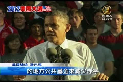 【新唐人亞太台2012年10月10日訊】接下來關心美國總統大選,根據最近民調顯示,歐巴馬與羅姆尼選戰僵持不下,羅姆尼只落後歐巴馬2~3%,甚至在某些州持平,二位總統候選人選情形成拉鋸戰;星期二(9日)歐巴馬繼續在俄亥俄州哥倫布市為選舉造勢。