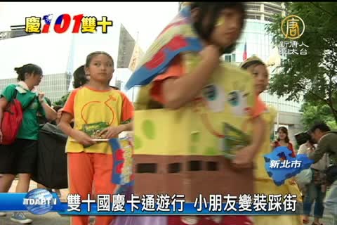 【新唐人亞太台2012年10月11日訊】除了總統府前舉行隆重的國慶典禮,如果兒童劇團也發起百人童心國慶踩街遊行,今天(10日)下午登場,號召100多位大小朋友,扮成各種童話人物或電影角色,透過小朋友的視野,度過不一樣的雙十國慶。