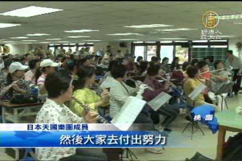 將近二百人大規模的法輪大法台灣天國樂團,為了10月27日全國義消運動會,正在進行引領隊伍的練習,還有150人擔任大會樂隊,陣容龐大的在桃園 體育場練習了二天,樂團成員來自全國各地,甚至還有來自海外的成員。