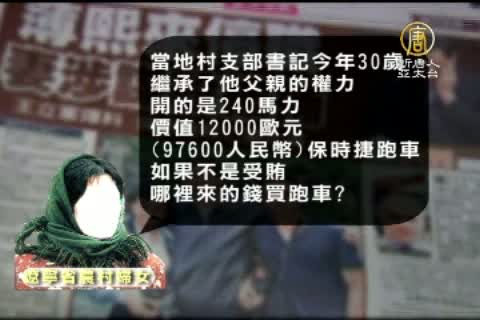 《德國商報》引用地方作威作福的村官例子說,中共體系彷彿是世襲貴族統治階層。一位遼寧省農村婦女說,當地的村支部書記,今年30歲就繼承了他父親的權力,開的是240馬力價值12000歐元(97600人民幣,請配音近十萬人民幣)的保時捷跑車。如果不是受賄,哪裡來的錢買跑車?