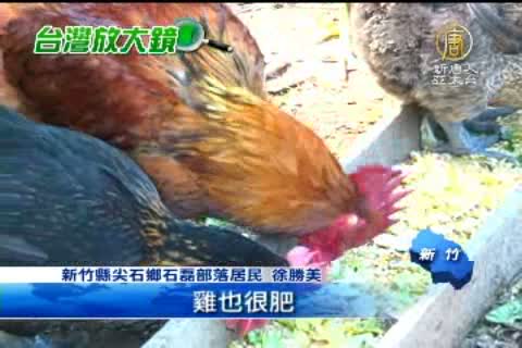 新竹縣尖石鄉石磊部落居民 徐勝美: 「養這個酵素雞對人體健康,我們不給牠抗生素啦那些東西,我們完全用有機的葉菜那個廢葉,我們就用酵素來泡這個牠的飼料,要吃的葉菜。」