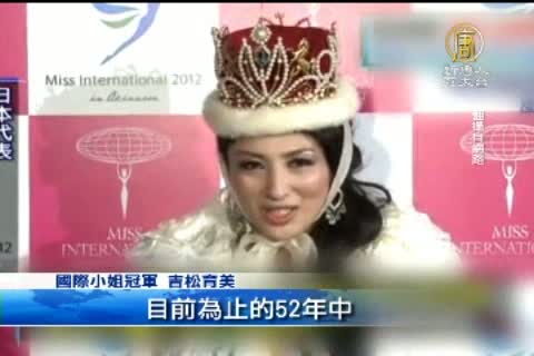 【新唐人亞太台2012年10月23日訊】第52界國際小姐選美大賽昨天在沖繩那霸市舉行,最後由來自日本佐賀縣、25歲的吉松育美摘下后冠,成為首位為日本人奪取國際小姐冠軍。
