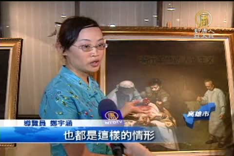 導覽員 鄭宇涵:「這幅畫就是中國大陸活摘人民器官的一個情景,一個迫害的方式之一,其實不只是法輪大法的學員受到迫害,其他宗教或是異議份子,也都是這樣的情形,然後以高價的方式,把這些器官賣給其他國家的人民。」