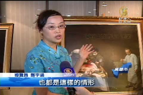 導覽員 鄭宇涵:「這幅畫就是中國大陸活摘人民器官的一個情景,一個迫害的方式之一,其實不只是法輪大法的學員受到迫害,其他宗教或是異議份子,也都是這樣的情形,然後以高價的方式,把這些器官賣給其他國家的人民。」