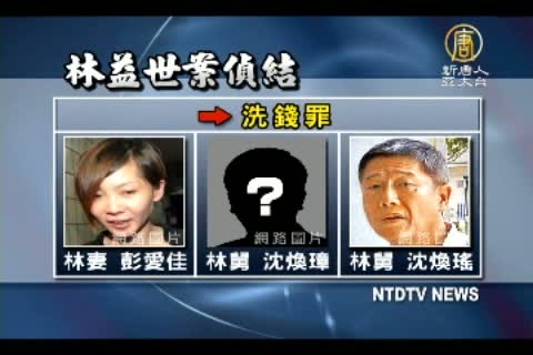 林益世被以違背職務收賄罪等四項罪名起訴,最重可判無期徒刑。林母沈若蘭被認定是收賄罪共犯,林益世妻子彭愛佳、舅舅沈煥璋、沈煥瑤都涉洗錢罪一併遭起訴。不過在索賄現場的父親林仙保則因為「重聽」,被認為未涉案。