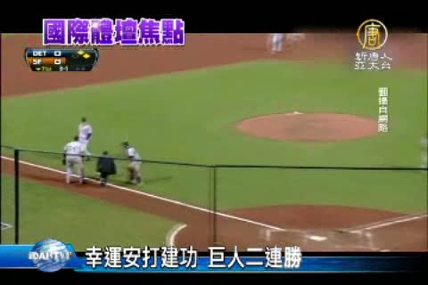 【新唐人亞太台2012年10月26日訊】來看到美國職棒世界大賽第二戰的戰況。老虎與巨人上演投手戰,巨人靠著幸運的內野安打攻下分數,以2比0險勝老虎,取得二連勝。