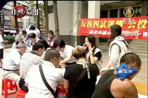 【新唐人亞太台2012年10月27日訊】反對核四廠運轉,前副總統呂秀蓮和民進黨主席蘇貞昌,兩人上午一起到新北市,宣傳反核連署行動,呂秀蓮表示,目前連署已經突破1萬6000份的門檻,可以正式送件提案,至於第二階段16萬份的提案門檻,她也相當有信心。