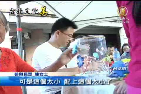 【新唐人亞太台2012年11月3日訊】用來裝南北雜貨的大小瓶罐,還能有哪些變化呢,為了展現大稻埕創意街區的風貌,台北市文化局與在地創意店家合作舉辦活動,準備不同大小的南北雜貨瓶罐,要民眾發揮創意,幫這些瓶罐,換上新衣。