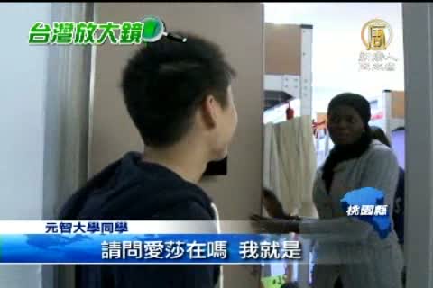 「請問愛莎在嗎?我就是。這個麵包給妳,這是麵包超人,代表滿滿的元氣,希望妳在台灣的學業可以順利!」