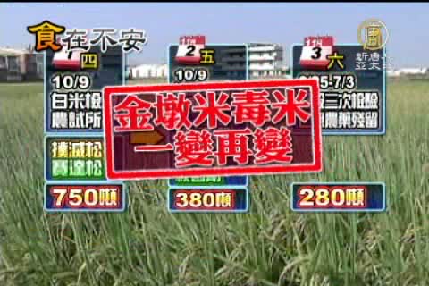 【新唐人亞太台2012年11月4日訊】鏡頭轉回台灣,外界關切的金墩米殘留農藥檢驗報告出爐!行政院農委會農糧署晚間表示,金墩米及其它市售米農藥殘留抽檢全部合格;然而農糧署指出,金墩公司先前宣稱的「看錯檢驗」報告,前後說法不一,衝擊國內稻米產業並造成社會不安,將另外移送檢調單位偵查。