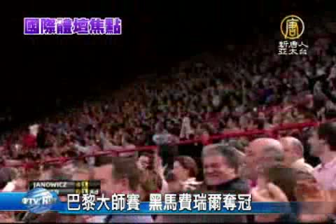 【新唐人亞太台2012年11月5日訊】本季男子職業網球聯合會(ATP)最後一項賽事「巴黎大師賽」,4日進行了男單決賽的爭奪。賽會4號種子、西班牙好手費瑞爾最終以直落二的成績擊敗了波蘭資格賽選手詹努維克茲,獲得自己本賽季第7個暨職業生涯第18個ATP賽事單打冠軍,這也是他職業生涯獲得的首個ATP大師賽冠軍頭銜。