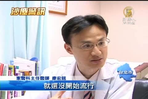 【新唐人亞太台2012年11月7日訊】天氣轉涼,加上入冬第一波沙塵暴來襲,呼吸道系統疾病患者首當其衝,還好環保署評估後 ,暫時解除沙塵警訊,不過醫師表示,每逢沙塵暴來襲,因為過敏或氣喘來求診的人數,就會增加三成左右,同時提醒,流感病毒也有可能挾帶在沙土之中,空降來台。