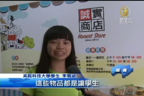 【新唐人亞太台2012年11月16日訊】嘉義吳鳳科技大學為推動品德教育,開辦誠實商店,讓學生在商店無人看管的情形下,將購物金額自行投入錢箱,以培養學生的誠信美德。