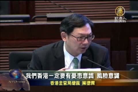 香港金管局總裁 陳德霖:「雖然資金不是短少,但是有可能再次出現大幅的進進出出,這些波動,同時房地產市場過熱,對我們金融和經濟的穩定都會構成風險。」