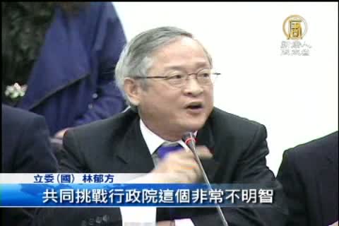 「你們要讓我這個模範生,要變成跟你們公開作戰的話,我絕對不會遲疑,共同挑戰行政院這個非常不明智,而且甚至非常不人道的這樣一個作法。」