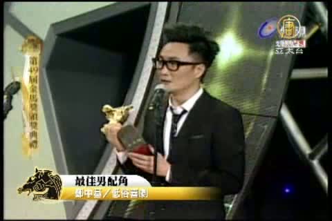 【新唐人亞太台2012年11月24日訊】好,目前已經有一些重要的獎項,公布得獎名單,最佳男配角,由港星鄭中基奪得,鄭中基得獎時說,沒想過自己會得獎,非常感謝金馬獎以及「低俗喜劇」的導演,只演了兩天就得獎,有點不好意思。還有哪些獎項已經公布,馬上來帶您看到: 最佳男配角由港星鄭中基獲得。最佳新演員:是中國大陸女演員齊溪。 最佳攝影也是頒給了大陸電影,「神探亨特張」的鄔迪。意義重大的終身成就獎:則是頒給了台灣資深演員,也是第二十八屆亞太影帝的石雋。