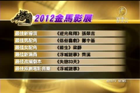【新唐人亞太台2012年11月24日訊】全球華人今晚都在關注華人影壇最重要的電影獎項!今年的金馬獎,中港台三地電影較勁,今年因為大陸、香港電影入圍者眾,從目前已經開出的獎項看來,幾乎全都是大陸、香港片奪獎,一直到晚間8點59分,台灣電影《逆光飛翔》導演張榮吉,拿下今晚的第一座金馬獎--最佳新導演。以下帶您來看目前已經揭曉的名單。最佳新導演,由台灣電影《逆光飛翔》導演張榮吉拿下。