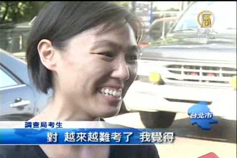 【新唐人亞太台2012年11月25日訊】月薪6萬元起跳的調查局,今年吸引4千多人報名投考,預估錄取率只有3%,今天是進行第二階段的體能考試,有不少的考生直言,景氣差工作難找,想擠進公職窄門人數倍增,競爭格外激烈,考選部表示,今年各類別公職投考總數,比起去年多出了5萬多人。