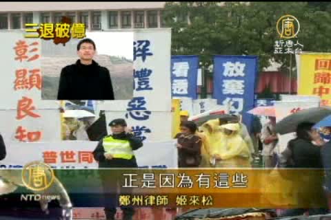 河北電台編輯 朱欣欣:「中共無論有多少地和多少軍隊,都無法阻擋這個社會的變革。所以我們中國的希望是在我們民間社會、民間力量的努力,通過退黨、退團、退隊這些活動,喚起更多的民眾來發揮每個人的力量。」