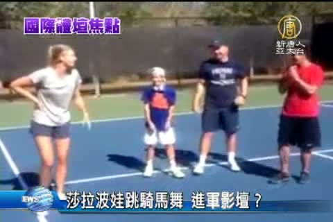 【新唐人亞太台2012年11月27日訊】正在美國佛羅里達進行冬訓的網球女將莎拉波娃,日前透露有意進軍好萊塢電影,昨天(26號)她在臉書貼上搞笑的騎馬舞畫面,看來莎娃已做足進軍電影的準備。
