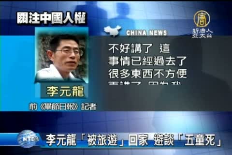 【新唐人亞太台2012年11月28日訊】首先披露貴州「五孩童在垃圾箱裡避寒被悶死」的大陸「公民記者」李元龍,自從上周三和妻子一起被國安帶走後,終於在周日重獲自由,在接受本台記者採訪時,李元龍坦言受到很大壓力,不便多做說明。