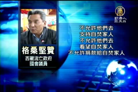 西藏流亡政府國會議員 格桑堅贊:「特別是十八大以後,它們(中共當局)還開始清算發生自焚事件的當地的藏民,不允許他們去悼念自焚家人,不允許他們去支持自焚家人,不允許他們去看望自焚家人,不允許捐款給自焚家人,它們還進行所謂的洗腦活動。要把所謂的當前的緊張局勢更傾向於思想。所以搞這麼多的政治活動,導致藏民更多的自焚抗議活動。」