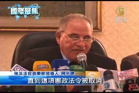 【新唐人亞太台2012年12月3日訊】12月1日,埃及總統穆希擅自宣布,將在12月15日舉行公投,表決包含總統擴權條款的新憲法草案。穆希的支持者2日前往最高憲法法院外進行抗議,迫使原本要針對新憲法草案合法性,進行重要裁決會議的最高憲法法院,宣布無限期休會,並發表聲明,指出除非法官能在「不受任何心理或身體壓力下」任事,否則不會開庭,也不會監督公投。而埃及全國法官權力機構也做出類似決定。