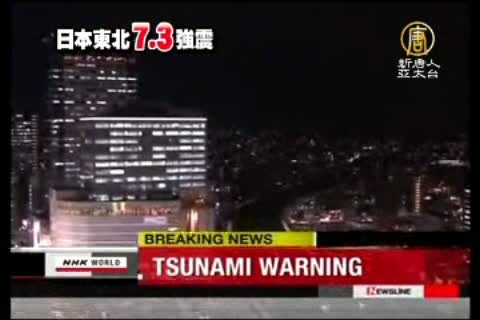 【新唐人亞太台2012年12月7日訊】新聞頭條,首先帶您看到,台北時間今天下午4點18分,日本東北外海發生芮氏規模7.3的強震,震源深度只有10公里。日本氣象廳隨後對青森、岩手、福島、茨城縣太平洋沿岸發出發布海嘯警報。目前得到的最新消息是,所有海嘯警報已經在剛剛,7時20分左右解除。