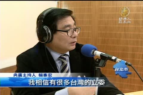 央廣主持人 楊憲宏:「尤其法輪功問題,有活摘器官這個議題,這美國國會在聯合國都出現,我相信有很多台灣的立委,過去也許只是覺得不要去做對岸不喜歡的事情,這樣的觀念在人權上面,他們反而沒有。這個法輪功這個問題如果我們不關心,我們就不算關心人權,我說不能,我們人權就是一個完整的,不可以有任何缺一角。」
