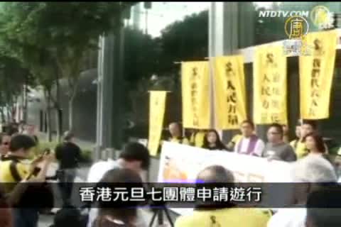 香港警方週六宣布,七個團體申請在元旦當天集會遊行,警方已同意三個團體的申請。包括要求香港特首梁振英下台的民間人權陣線和人民力量,以及訴求反中共迫害的法輪功學員遊行。