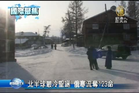 【新唐人亞太台2012年12月27日訊】聖誕節剛剛過去,接下來的跨年,由於強烈冷氣團來襲,低溫將下探八度。不只台灣冷颼颼,帶您看到,北半球在強烈寒流侵襲下,各地是頻傳災情,俄羅斯在過去10天當中,已有123 人因寒流不幸死亡,另有一千多人因為失溫與凍傷送醫。南部圖瓦地區零下40度嚴寒,四千人緊急撤離,而西伯利亞東部地區最低溫竟達零下60度,這個史上最寒冷的12月,對俄羅斯的重大考驗。