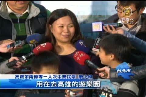 【新唐人亞太台2012年12月27日訊】上禮拜高鐵載客量衝破兩億人次大關,第兩億名搭高鐵的旅客,是一位每天來回新竹台北的賣場採購經理,高鐵也送上大獎,讓他一年內不管搭高鐵去哪裡,通通不用錢。
