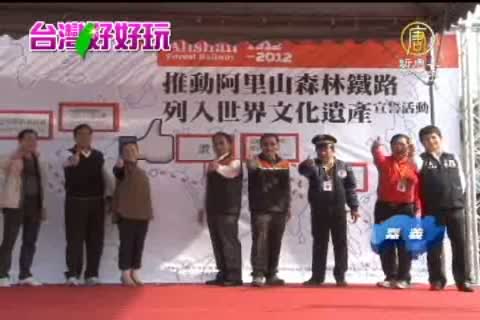 【新唐人亞太台2012年12月27日訊】各位觀眾您好,歡迎您收看今天的好樣formosa。為推動阿里山森林鐵路能夠列入世界文化遺產,嘉義林區管理處舉辦「自行車追蒸汽老火車」的趣味活動,宣示阿里山森林鐵路的珍貴,喚起民眾的重視與共同保護世界遺產的決心 。