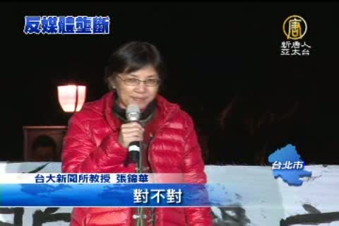 【新唐人亞太台2013年1月1日訊】從半年多前的反旺中併購中嘉案,到壹傳媒交易案,國內關注媒體壟斷造成言論集中化的聲浪高漲,但政府卻始終未正面表態,相關修法工作也進度緩慢。昨天跨年夜,反媒體壟斷青年聯盟, 1500人在自由廣場守夜,呼籲政府面對媒體壟斷表態。