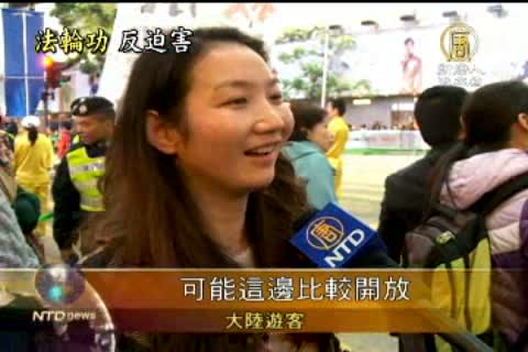 揭露中共暴政,呼籲民眾退出中共,法輪功的訴求獲得市民認同外,也讓大陸遊客大開眼界。