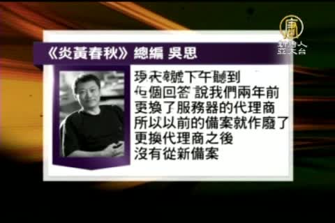 《炎黃春秋》總編 吳思:「今天4號下午聽到一個回答,說我們兩年前更換了服務器的代理商,所以以前的備案就作廢了。更換代理商之後沒有從新備案。現在就封了我們的網站,但是我們在兩年前沒有更換過代理商,這個解釋好像不是針對我們這個網站的解釋,所以究竟為什麼封我們,我們現在也沒弄清楚。」