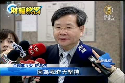 【新唐人亞太台2013年1月8日訊】國營事業虧損卻領取高額年終,朝野立委週一晚間經過5個多小時協商,決定大砍國營事業100年度績效獎金,包括中油、台電、台糖、台水等單位,原本績效獎金最多可以領2.6個月,現在最多只能領1.2個月,替國庫省下28.75億元。