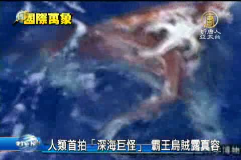 【新唐人亞太台2013年1月9日訊】日本國際廣播電臺NHK和探索頻道週一公佈了一隻長約8米的深海巨型烏賊的照片。這是人類首次拍攝到這種傳說中的深海巨怪「霸王烏賊」。