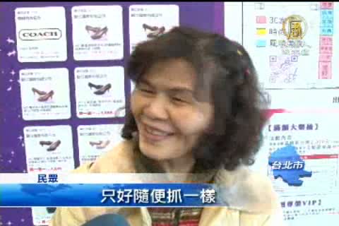 【新唐人亞太台2013年1月11日訊】景氣還在復甦中,想省荷包的民眾,下面這條新聞,不能錯過,圓山爭豔館首次舉辦周年慶,為期四天的年前折扣大出清,讓民眾可以輕鬆的,買到名牌包。